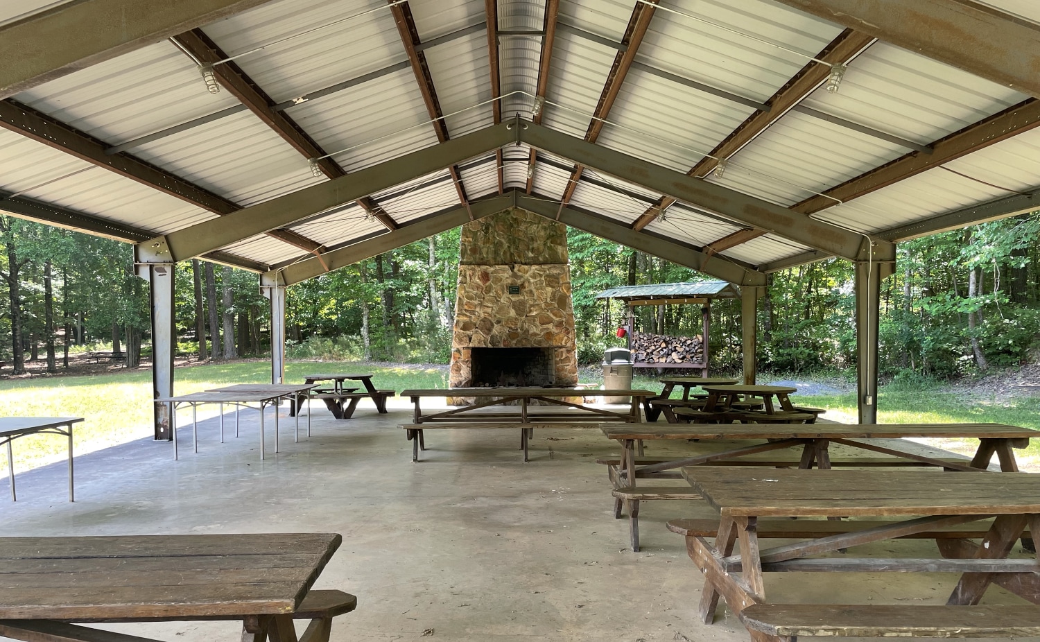 The Blackfoot Shetler is a large covered pavilion located in the Blackfoot field near Lake Goodyear. The pavilion contains a fireplace, tables, water, a flagpole, electricity, and a large grass field. Blackfoot Shelter is the location for Camp Sidney Dew's first-year camper program, "Spike Buck."