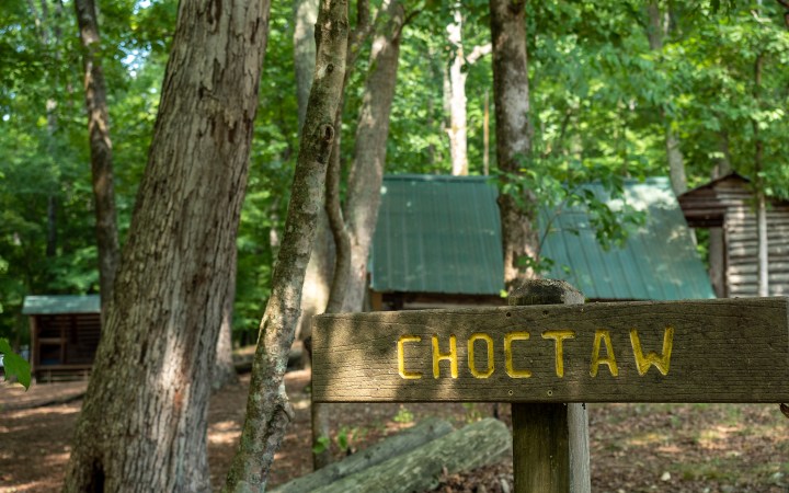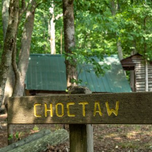 The Choctaw campsite has six lean-to shelters and is also suitable for tents. Each shelter contains four bunkbeds and mattresses. Choctaw is centrally located and near the Athletic Field, Archery Range, Rifle Range, Shotgun Range, the Trading Post, OA Lodge, OA Ceremonial Pool, Handicraft, The Council Ring, and the Trading Post. Choctaw is a wooded site with plenty of shade.