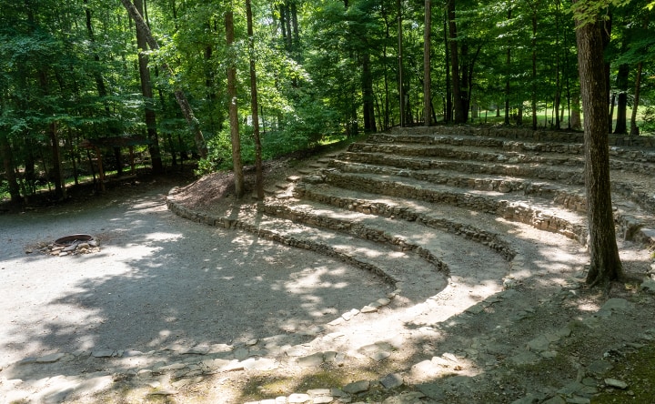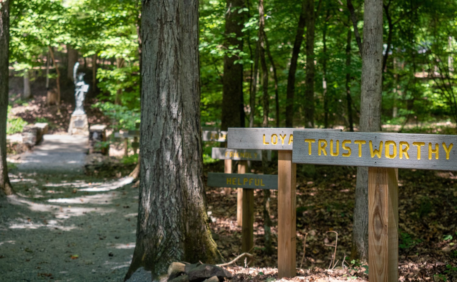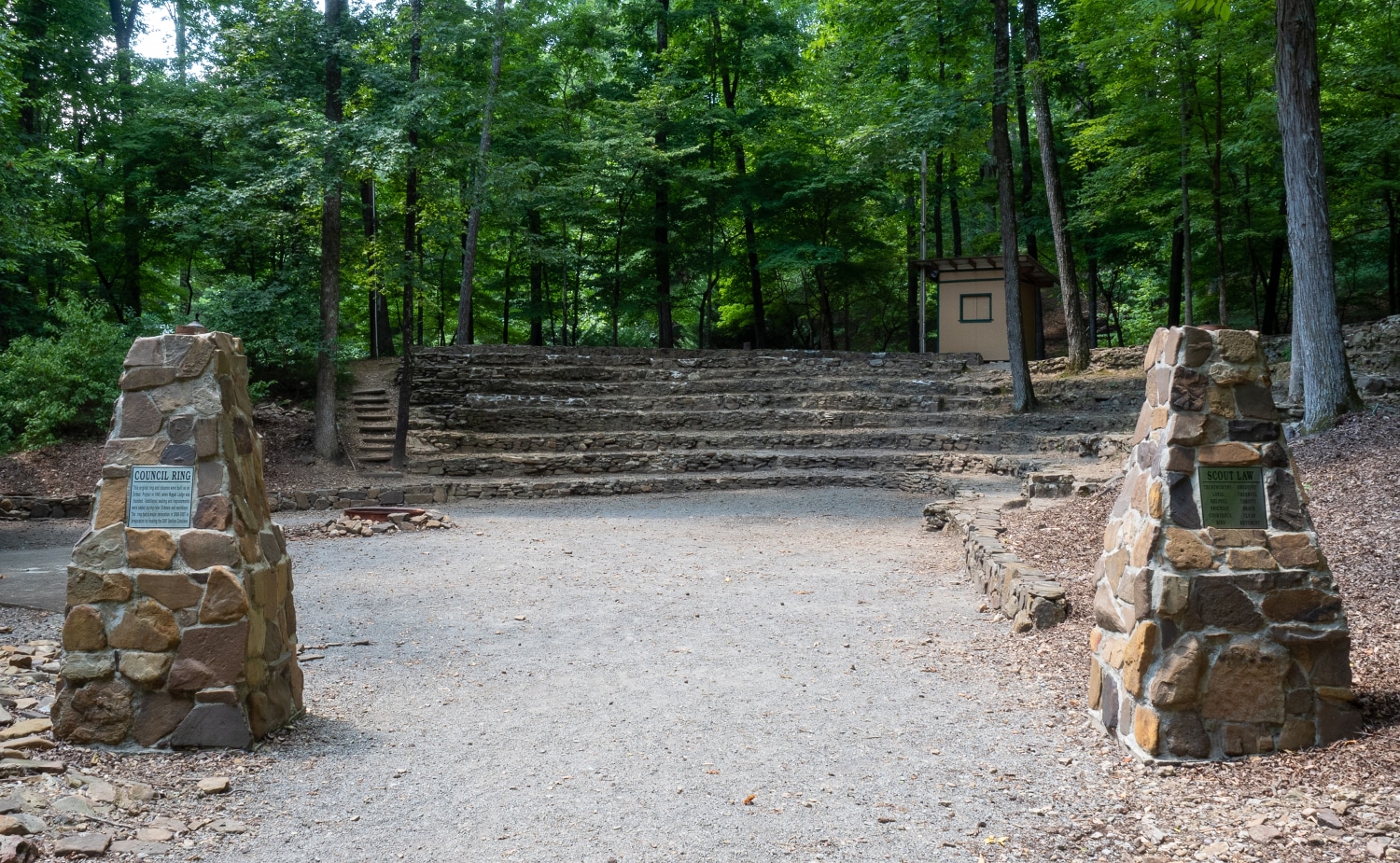The Council Ring is the location of camp opening and closing ceremonies. Located across from the trading post, the Council Ring is home to one of the Little Sisters of Liberty statues.