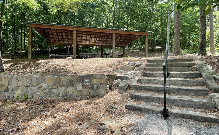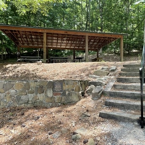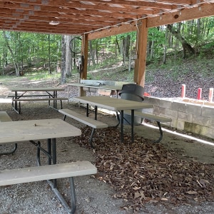 Simmons shelter is located next to Hubbs and is equipped with electricity, water, tables, a sink, and a large charcoal grill.