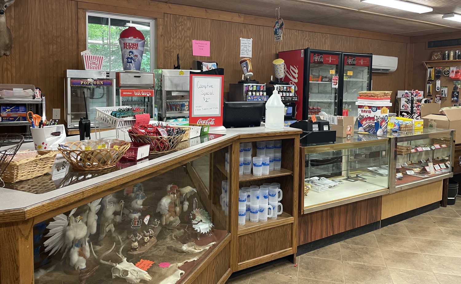 The Trading Post, also known as the Tom Caldwell Cabin, is where campers can purchase snacks and souvenirs.
